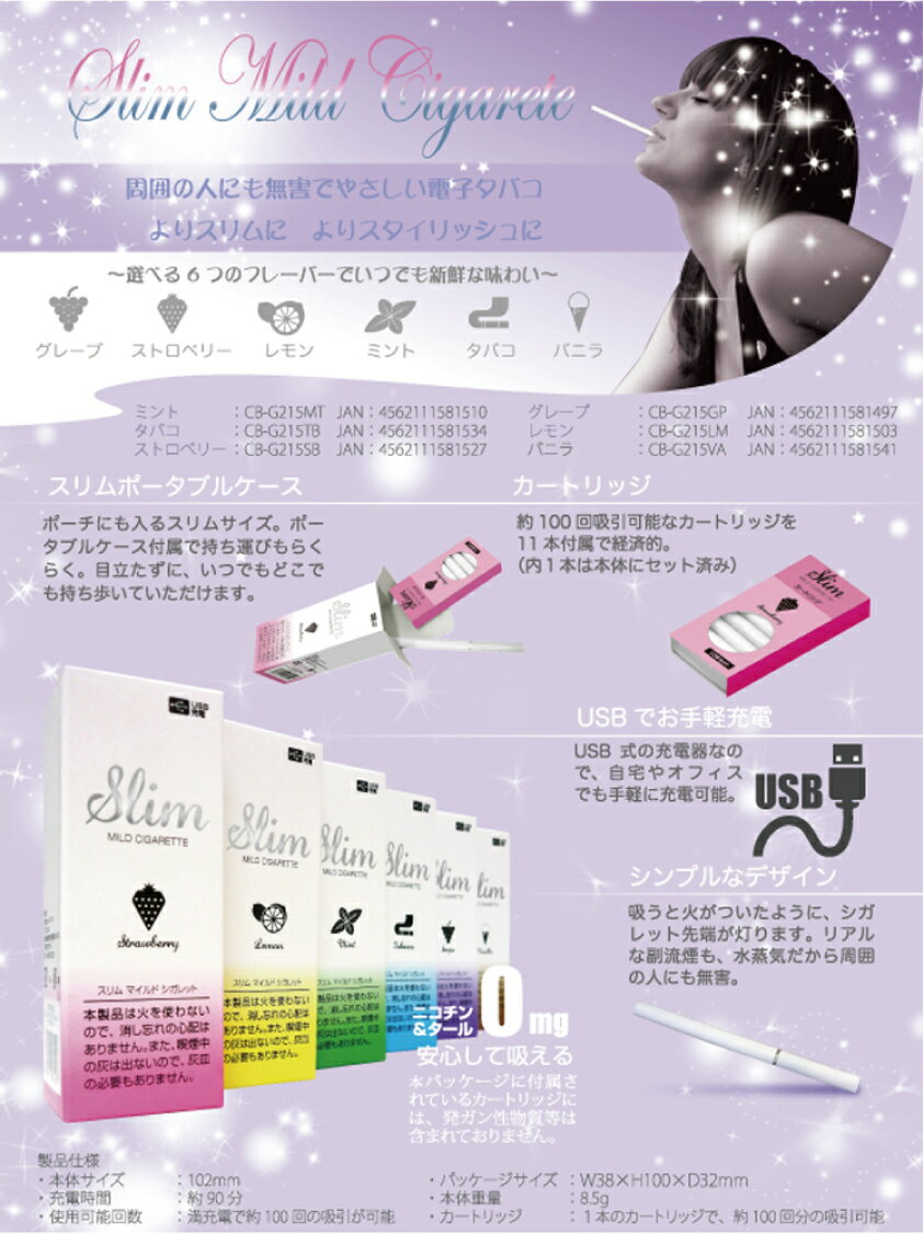電子タバコ ご購入者全員にカートリッジ(10本入り)プレゼント スリムマイルドシガレット本体(白) グレープ味 レビューが条件です。 USB充電タイプ 電子たばこ 価格: 1,980円 商品名 カテゴリー 充電タイプ 本体本数 カートリッジ本数 味の種類 評価 スリムマイルドシガレット 本体 パソコン充電 1本 11本+10本 6種 85点 内容説明 本体*1本、カートリッジ*11本+10本、USB充電器*1、日本語説明書、90日間保証書 お (更新日時:2010/12/26 00:47) Supported by 楽天ウェブサービス |